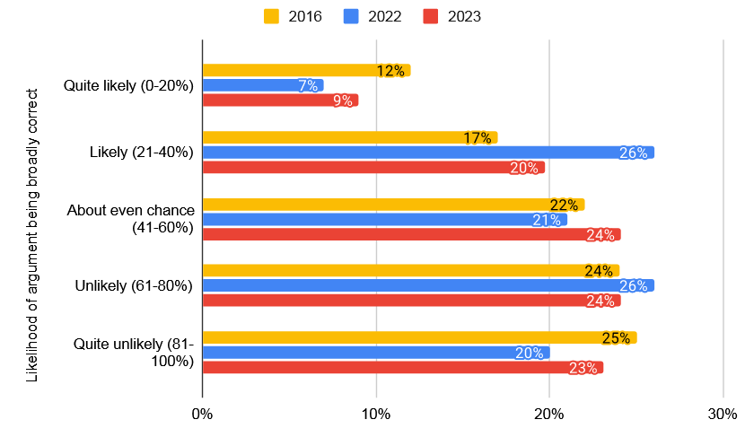 Right now, no one can say for sure that an intelligence explosion is impossible. In 2023, the “thousands of AI researchers on the future of AI” survey interviewed 2778 of the world’s leading AI researchers on numerous AI topics. Here is how they responded to whether an intelligence explosion is possible: